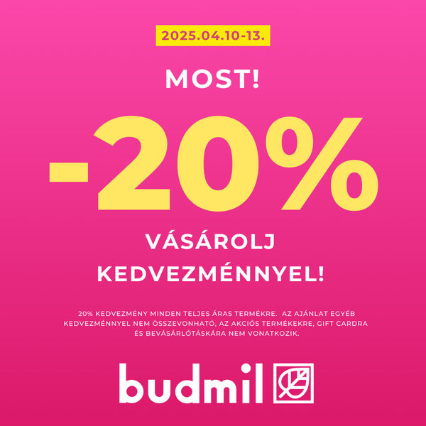 20% kedvezmény minden teljes áras termékre. Az ajánlat egyéb kedvezménnyel nem összevonható, akciós termékekre, gift cardra és bevásárlótáskára nem vonatkozik.