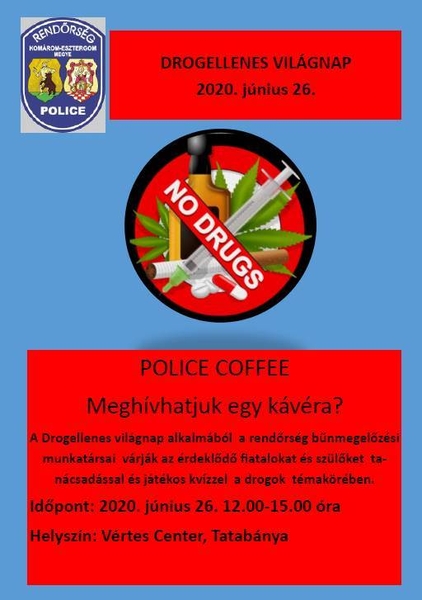 A Drogellenes világnap alkalmából a Komárom-Esztergom Megyei Rendőrkapitányság Bűnügyi Osztálya június 26-án, pénteken tizenkettő és tizenöt óra között tanácsadással és játékos kvízzel várják az érdeklődő fiatalokat és szülőket a drogok témakörében a Vértes Center Győri úti bejáratánál.