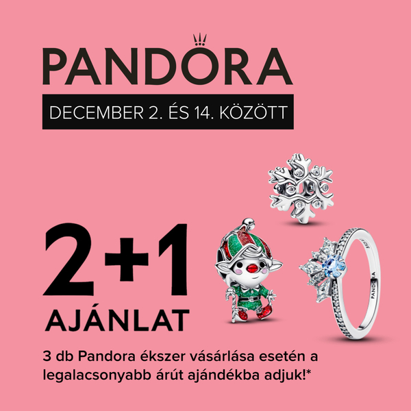 három teljes árú Pandora ékszer vásárlása esetén a legalacsonyabb árút most ajándékba adjuk, egészen december 14-ig!