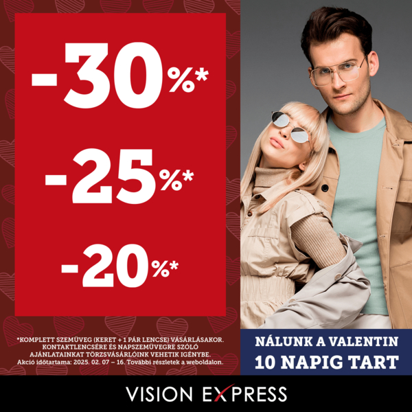 Vesd azt a bizonyos első pillantást szemüvegeink mögül! Most 20%, 25% vagy 30% kedvezményt adunk február 16-ig!*