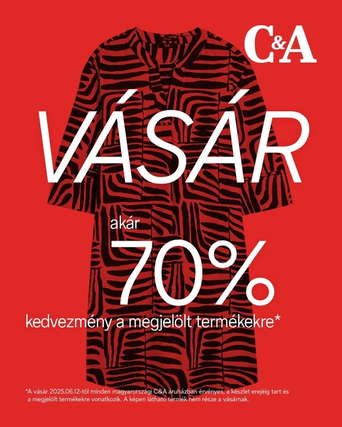 A vásár 2025.06.12-től minden magyarországi C&A áruházban érvényes, a készlet erejéig tart és a megjelölt termékekre vonatkozik. A képen látható termék nem része a vásárnak.