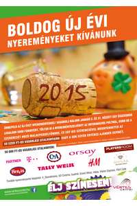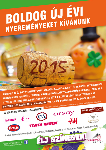Vásárolj a Vértes Centerben 2015. január 2. és 31. között legalább 5.000 Ft értékben*, töltsd ki az információs pultnál** kapott nyereményszelvényt és nyerd meg az 50 ezer forintos vásárlási utalványainkat vagy további értékes ajándékainkat.