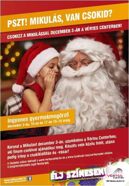 Keresd a Mikulást december 3-án, szombaton 12 órától a Vértes Centerben, aki finom csokoládéval ajándékoz meg, aztán irány a csokivásár!