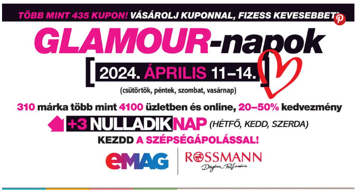 2024. április 11. és 14. között az alábbi üzleteink várnak a Glamour-napi kedvezményekkel: