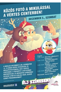 A Mikulás december 5-én, szombaton 12 és 18 óra között közös fotózással és meglepetéscsokival vár a Vértes Centerben.