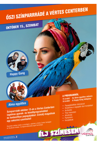 Színparrrádé október 15-én, szombaton a Vértes Centerben izgalmas gyermek- és felnőttprogramokkal és fantasztikus papagájokkal.